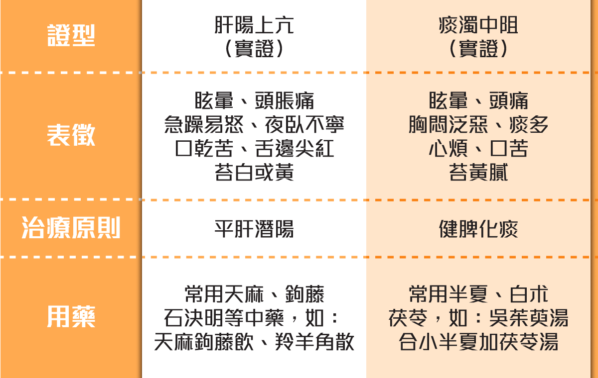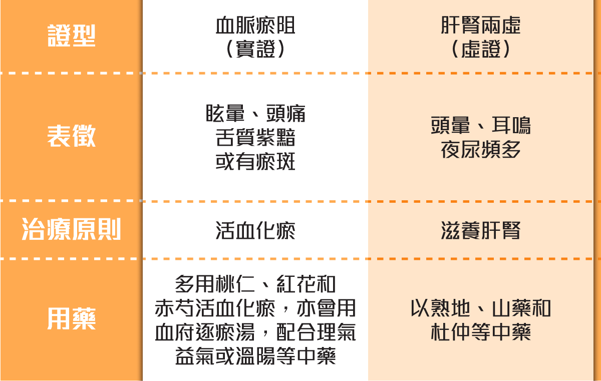 臨床上中醫將高血壓再細分為虛實兩證,根據其特徵制定具體療法,對症下藥。高血壓「實證」可分為三大常見證型:「肝陽上亢型」、「痰濁中阻型」、「血脈瘀阻型」;高血壓「虛證」以「肝腎兩虛」最常見。