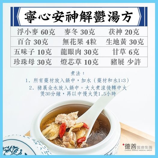 近排成日心事重重,夜晚訓唔好又失眠,成個人都無嗮精神。德善關懷您和家人的健康,用心炮製寧心湯方,有助安神放鬆,定驚解鬱,讓你訓返個好覺!大人細路都啱飲,仲好好味㖭~快D試下啦!